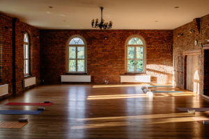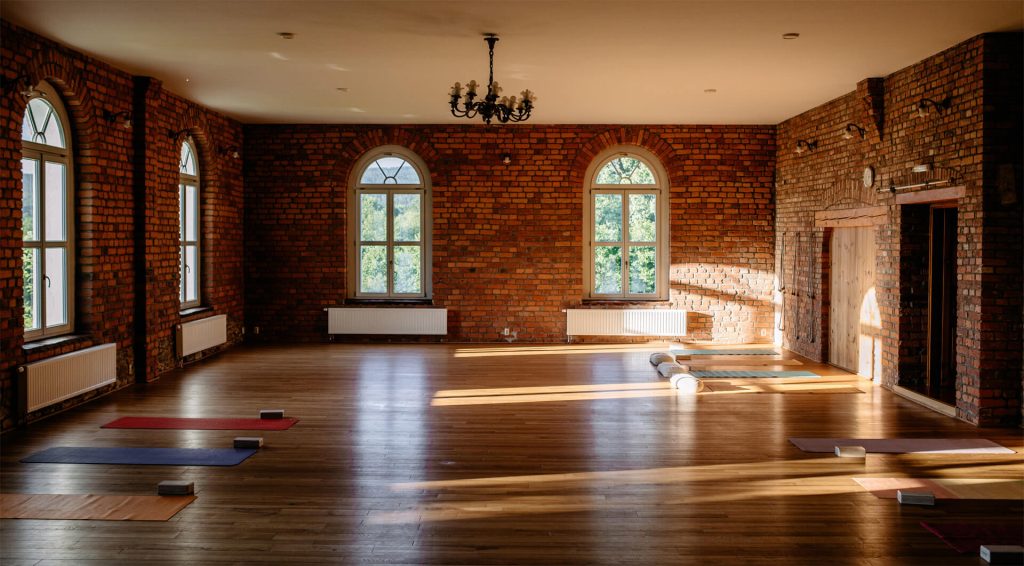W trakcie warsztatów będziemy spotykać się w dużej (160 m2) sali z podłogą wykończoną drewnem jesionowym, które jest systematycznie pielęgnowane. Sala jest wysoka, oszklona dużymi oknami.